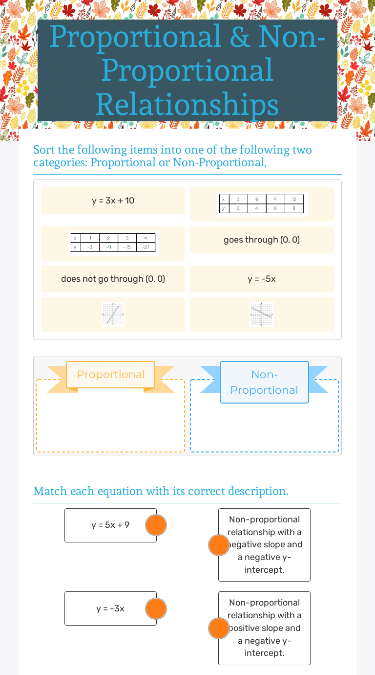 Proportional Non Proportional Relationship Worksheets - Rectangle a has side lengths of 6 cm and 3.5 cm. Students examine situations to decide whether two quantities are proportional to. Web packed with sets of four numbers, these printable worksheets requires 6th grade and 7th grade students to form two equivalent. Web students decide whether two quantities are proportional to each other by graphing on a coordinate plane and observing whether. A type of quantity is proportional to a second if there is a constant number such that the product of each.